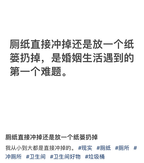 提问:你们家的厕纸是冲掉?还是放垃圾桶里?