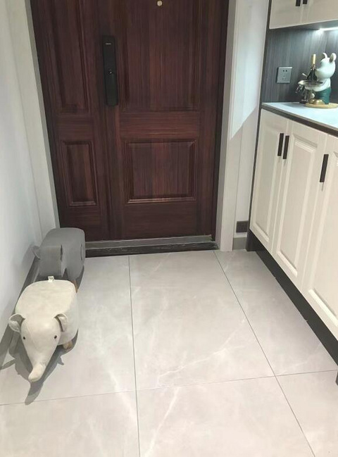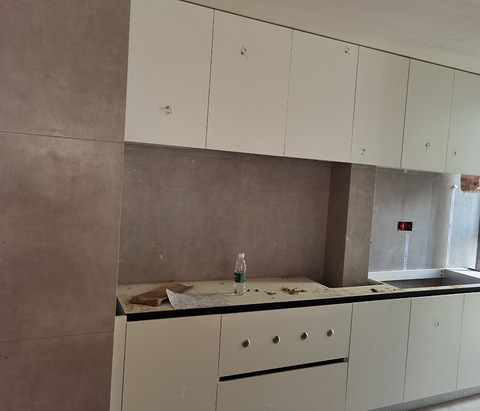 厨房是地砖上墙,之前没装柜子的时候还好,现在感觉对比太强列了。