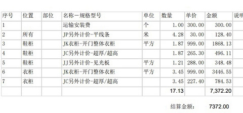 我不太懂啊,衣柜鞋柜都超厚费用??有没有好朋友帮我看看啊,是合理的吗?
