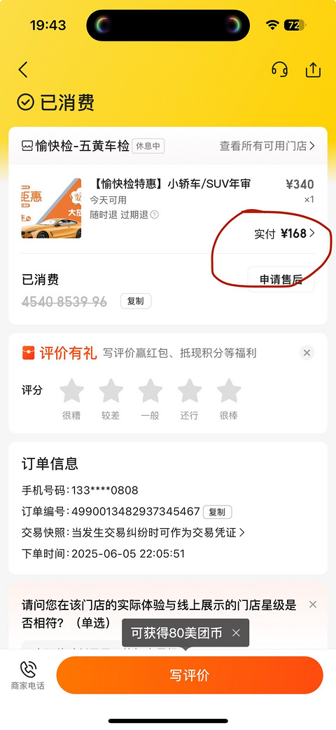 自己的车车满6年了,4S店很早给我打电话说帮忙去年审,几大百费用!我想前几天才在团购上看到才168!果断拒绝,自己团购自己去不香迈[/11害羞]美团买起~ 然后提前一天预约,会有客服你微信你上传资料即可! 需要资料:身份证(可以带起),车辆行驶证,三脚架,反光背心(18年以后的车辆需要)注意:车辆不能有违章,交强险要在有效期内,车船税纳税证明和交强险不用带,现场都连网的检车流程:开车到指定地点,我