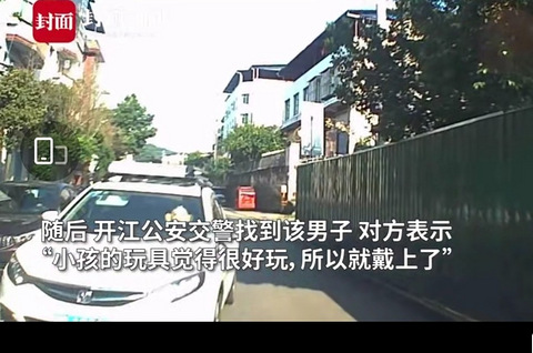 四川一男子戴猪八戒面具开车,称因觉得好玩。