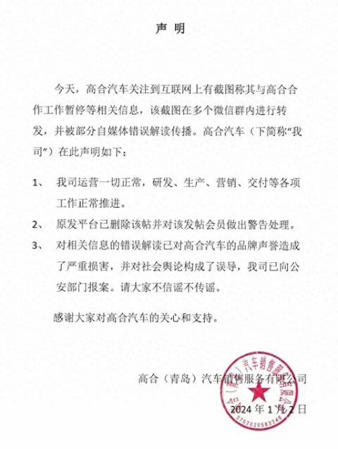 2024年新能源战场会非常卷,大家除了关心价格之外也都在“吃瓜”,吃什么瓜?谁会是2024年第一个被打“死”的品牌。就在1月3号,这个“第一”或许落到了高合头上。 在大家还都沉浸在新年的喜悦中的时候,上班第一天就有不少媒体报道:高合汽车工作暂停,包括停止交付、项目开发,并让车主做好起诉准备工作。此后,还有更多料被爆出,包括:元旦假期第一天晚上高合汽车在飞书发公告称,取消员工的餐补、交通补贴、公司班