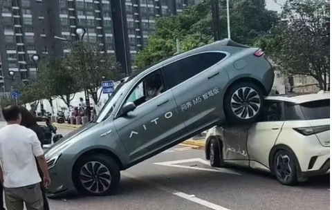 问界突发!M5倒车骑上后车车顶,AEB失效?余承东回应