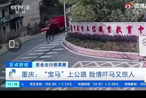 吓马又惊人,重庆一男子骑汗血宝马上公路。