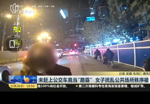 12月13日22时32分许,上海女子史某因为没赶上一辆105路公交车,在车辆驶出车站并等候红灯时,要求司机开门上客,遭拒后绕至驾驶室一侧与司机理论,未果后竟直接挡在车前,不顾一车乘客指责和道路通行秩序,玩手机长达20分钟。史某事后表示,自己被拒后,出于报复心理,为赌一口气,头脑一热走到车前,阻拦公交车前行。目前,史某已被普陀警方行政拘留。
