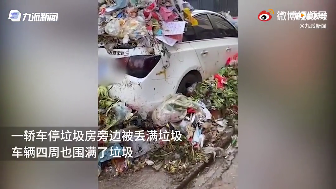 私家车停垃圾堆旁被丢满垃圾,网友:求车主心理阴影面积。