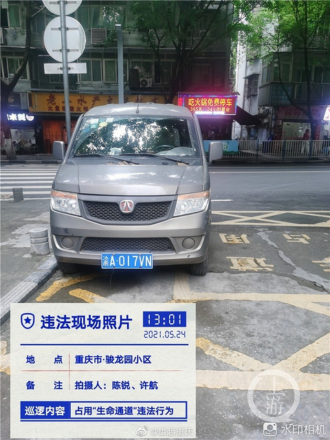 占消防通道重庆1347辆车被曝光,查处违停车辆392辆,警告220人