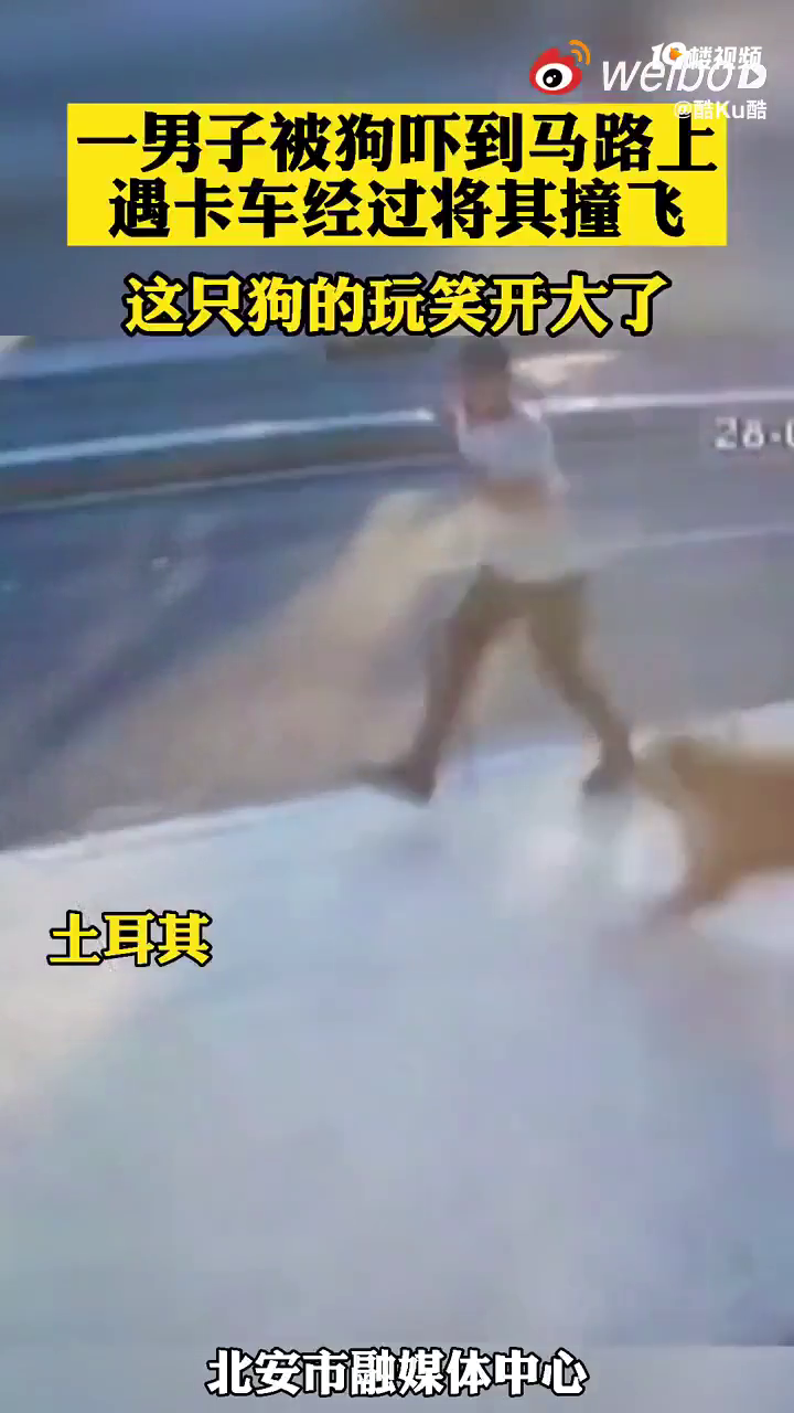 男子为躲狗被卡车撞飞,惊魂一幕曝光。