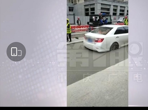 今天早上,卢先生开车经过重庆大渡口区景灿路时,不慎把车开进了正在施工的水泥坑里,进退两难。
