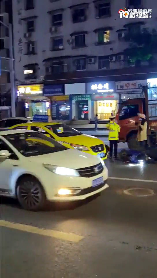 11日晚8点左右,杨家坪环岛往石坪桥方向,一送外卖的女骑手在双黄线违规调头被正常行驶出租车撞倒,所幸伤势不大,交警已到现场处理,两个职业都是抢时间,开车一定注意安全。