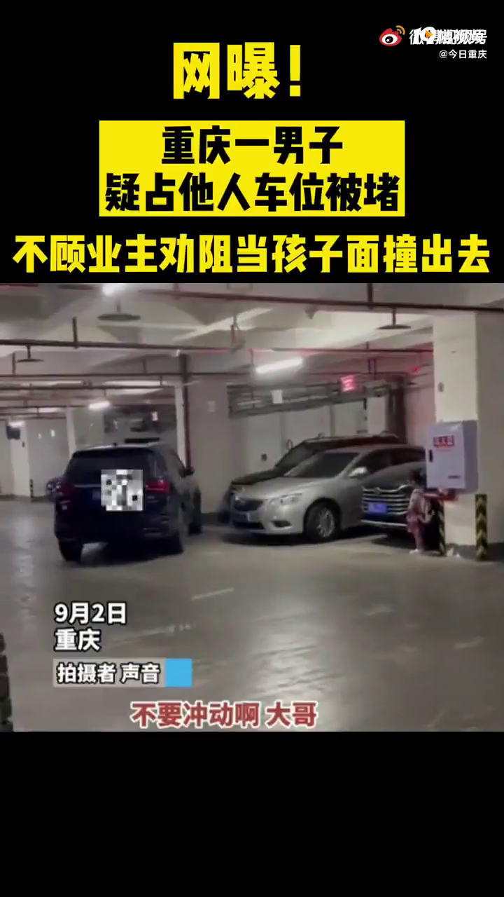 重庆一男子疑占他人车位被堵,不顾业主劝阻当孩子面撞出去。
