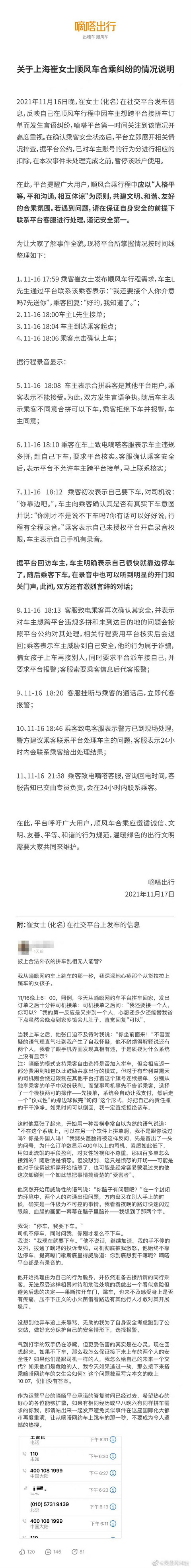 今日上午,上海崔女士(化名)发帖爆料称,自己乘坐嘀嗒网约车时,因质疑司机绕过系统违规拼单,被怼“你脑子有问题吧?”。发生言语纠纷后,崔女士要求下车被拒,出于害怕无奈之下跳车。针对女乘客与司机言语纠纷事件,嘀嗒出行在微博上回应称,已对车主账号进行扣分及暂停接单处置,后续将根据客诉处理进展及时更新。