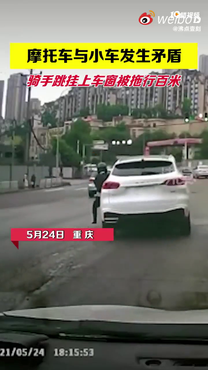 重庆司机嫌摩托挡道连人带车推倒,摩托司机跳挂小车被拖行百米