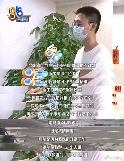 男子疑因色弱不能考驾照被分手,只因无法开车带女友出去玩?