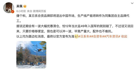 ”某日系合资将退出国内市场”,近期清仓,猜猜是谁?