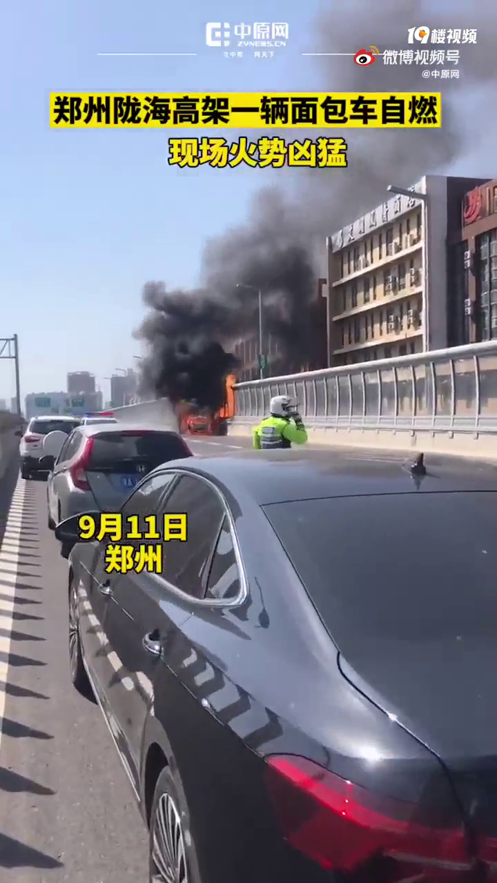 一辆别克GL8在郑州高架上烧成壳
