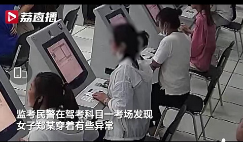 监考民警在驾考科目一考场发现女子郑某穿着异常,其衣服领口有个很大的金属扣。经查,金属扣里藏着针孔摄像头,原来,郑某因模拟练习多次未及格,于是花6000元请教练王某帮作弊,目前,王某等3名教练已被拘,郑某成绩取消。
