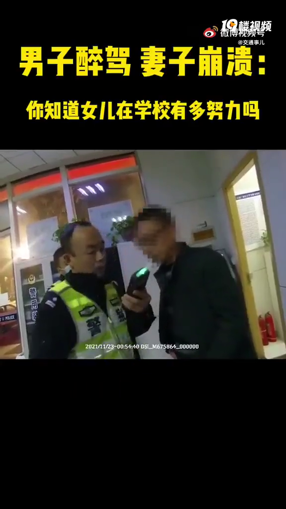 11月23日,湖北襄阳。一男子醉驾被交警查处,妻子赶来后当场崩溃,对男子质问道:“你知道女儿要强,在大学这么勤奋要考研,她知道怎么想?”