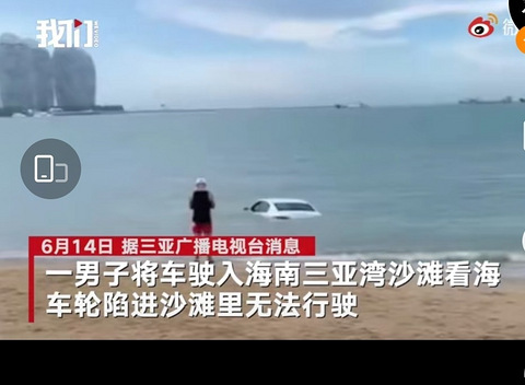 6月14日,据三亚广播电视台消息,一名男子将车驶入海南三亚湾沙滩看海,车轮陷进沙滩里无法行驶,导致涨潮时车辆被海水淹没一半,救援队赶到后将涉水车辆拖至岸上。根据海南省城乡容貌和环境卫生管理条例第二十条规定,三亚市综合执法局天涯分局对该男子处以100元罚金。