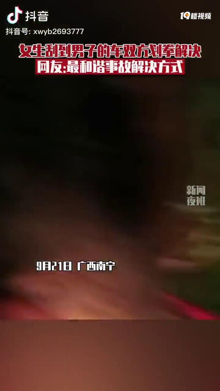 广西南宁。中秋节晚上女生开车不小心刮了一男生的车,刮车后女孩和男生石头剪刀布砍价私了。据悉,女生主动道歉并赔偿,出拳后大家都开心的笑了。网友:乐观的人碰到心态好的人~