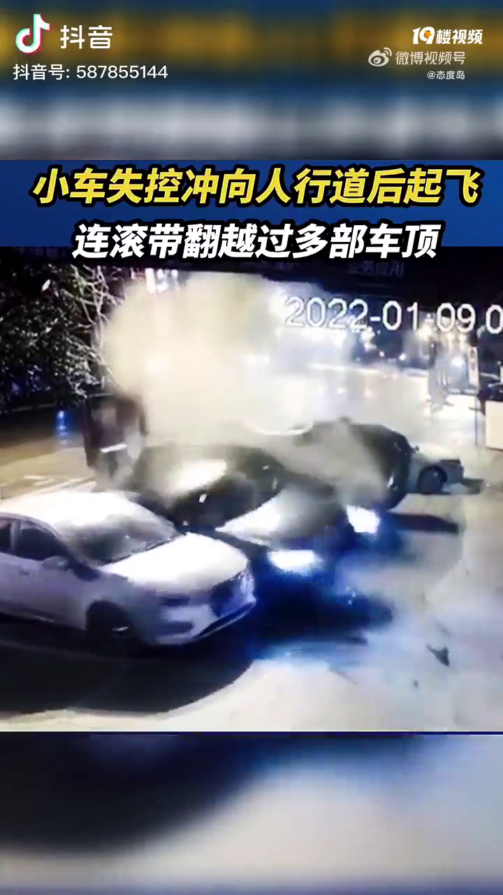 1月9日,重庆一网友发布一段监控视频,一辆轿车在转弯时没有减速,随后疑失控冲向路边,翻过多辆小车车顶,造成多车不同程度受损,最后准确落在4辆并排停放的小车之间的空位中,现场一片狼藉。有网友评论称,这车停得有点费车。