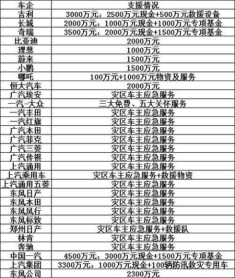 还有一个疑问,现在名单里面,这种捐款,其实应该算是中方捐的把,举例: 长安集团携旗下全系品牌,联合捐赠1000万元现金及价值500万的应急服务。其中,长安汽车捐赠现金500万、长安福特捐赠现金200万、长安马自达捐赠现金200万、长安跨越捐赠现金100万,驰援灾区,用于支援河南省防汛救灾和灾后恢复工作 另外,那些德美日系外商赚了钱,咋就抠门呢。。从各种名单汇总来看,目前就是奔驰在一个表有