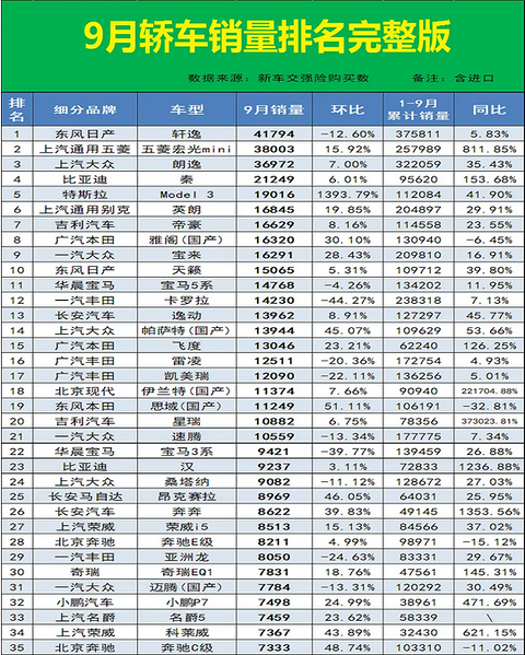 9月份轿车销量排行榜完整版,宝马是真不缺芯片,卡罗拉接近腰斩