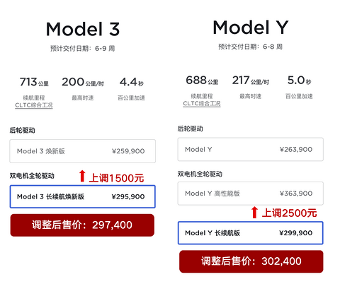 特斯拉又又又涨价了! 11月14日,特斯拉官宣即日起,Model 3/Y后轮驱动版售价正式上调! Model 3后轮驱动版涨价1500元至26.14万元 Model Y后轮驱动版涨价2500元至26.64万元 还是那句话,早买早享受 【Model 3/Y后驱版涨价】11月14日,特斯拉中国官网再度更新,对Model 3及Model Y后轮驱动版上调起售价。其中,Model 3后轮驱动焕新版上调售价