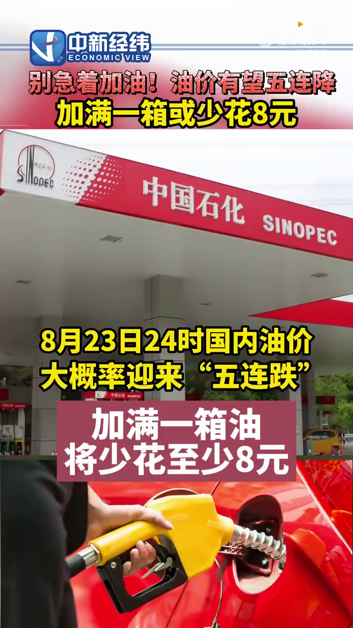 8月23日24时,国内新一轮成品油调价窗口将开启,有望迎来“五连跌”。据机构测算,预计国内汽油、柴油下调幅度为每吨210元,折合汽油、柴油每升下调0.2元左右。本轮油价调整落地后,95号汽油有望回归“8元时代”。