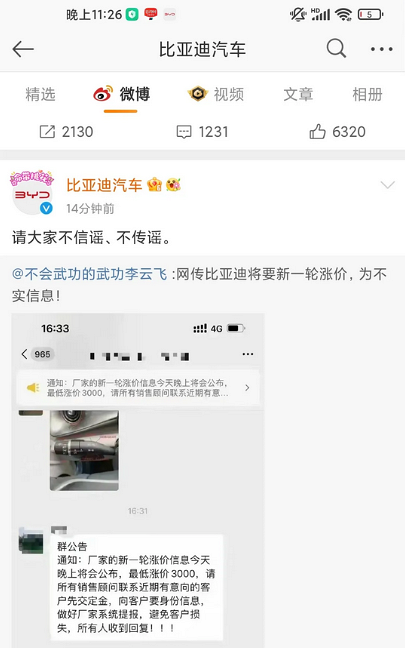 应该是不涨价了,比亚迪官方微博都自己转发了,不信谣,不传谣
