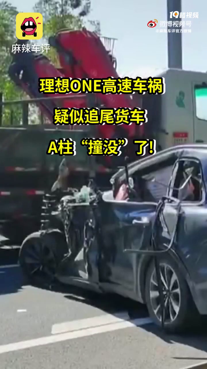 一辆理想ONE高速车气祸疑似追尾货车,A柱撞没J。