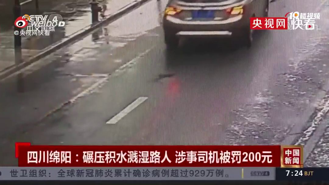 四川绵阳,一男子站在路边等车,他身前的路面上有一滩积水。这时,一辆白色SUV驶过,溅起积水,让路边的男子湿了一身。男子意图找肇事司机理论,但肇事车驾驶人却并不予理会。随后,男子向交警部门举报。查看监控后,交警部门认为,肇事车驾驶人行为违法!