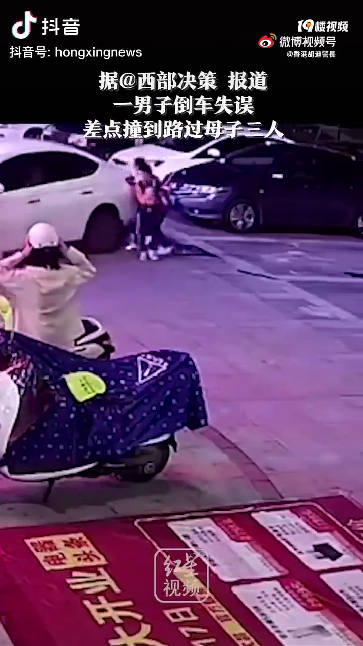 10月16日,广西玉林。一男子倒车失误,差点撞到路过母子三人,母亲反应神速一把拉过孩子。目击者周先生称,路过母子三人没有受伤,但受到惊吓。据悉,该男子可能错将油门当刹车,撞到后面一停放车辆才停下来。周先生表示,事后交警已进行处理。