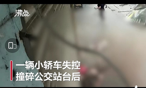 重庆轿车失控撞碎公交站台撞飞路人,现场碎屑一地伤者倒地不起。