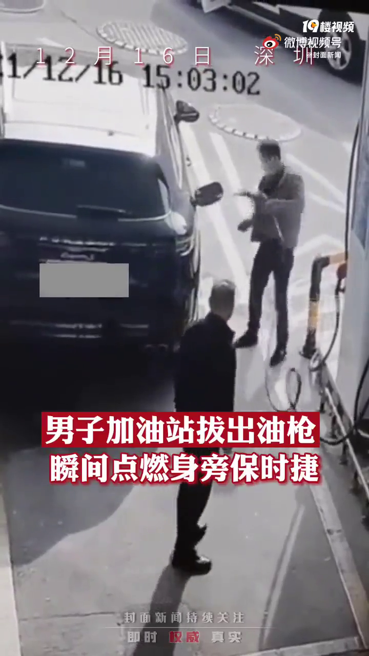 12月16日,广东省深圳市宝安区沙井街道某加油站内,一男子点燃油枪引燃正在加油车辆后逃跑。监控视频显示,一辆黑色轿车加油时旁边一名男子突然上前拔出油枪,并点燃油枪上喷出的汽油致车辆起火,随后该男子扔下油枪逃逸。车内一女子在别人帮助下逃出起火车辆,加油站工作人员迅速用灭火器将火扑灭。正观记者从警方处获悉,目前警方已介入调查,纵火人员已锁定。
