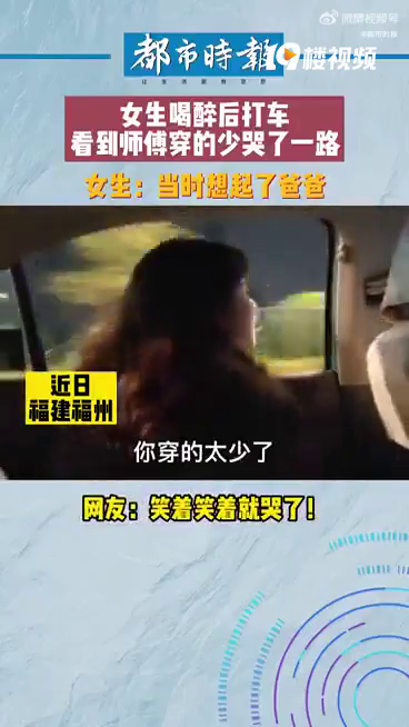 一位女生喝醉后和朋友一起打车,看到司机穿的单薄哭了一路:“师傅你冷吗?晚上出来多穿一点,我帮你把车窗摇上去,我爸爸穿这么少可怎么办。”网友纷纷表示泪目:“她一定很爱爸爸!”