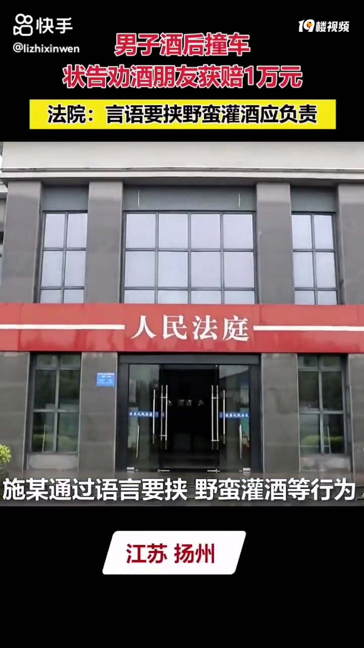 男子酒后撞车状告劝酒朋友获赔1万法院:言语要挟野蛮灌酒应负责