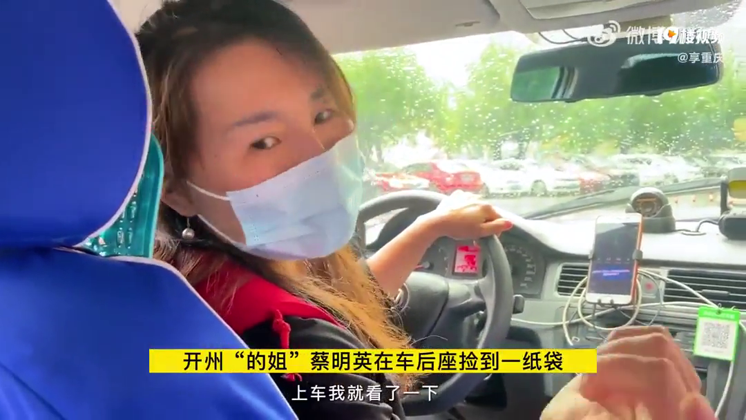 5月18日,乘客在开州乘坐出租车落下3万元现金,“的姐”全城寻找失主。这位热心“的姐”名叫蔡明英,她拾得现金后,心急如焚的赶往公司,经清点袋中有37700元。不久后,失主便来到公司认领了钱袋。