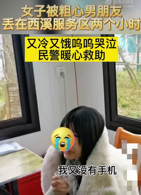 贵州毕节。一女生在服务区上完卫生间后,发现男友已经离开,自己又没有带手机,原地等了2小时又冷又饿,直呼差点晕过去。民警联系上其男友回来接她。