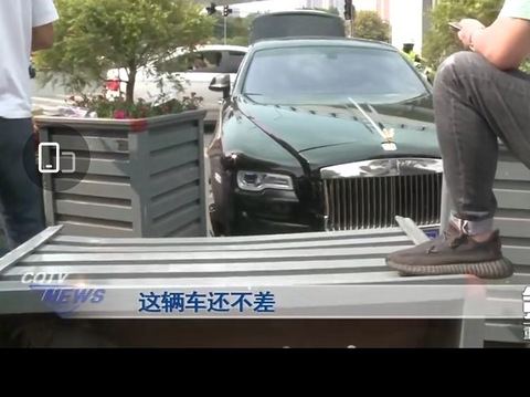 一辆劳斯莱斯和一辆丰田越野车发生了碰撞,两车均受损。