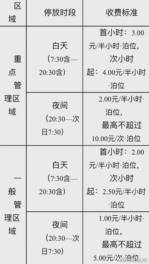 4月15日起重庆中心城区路边停车最高将涨价至8元/小时