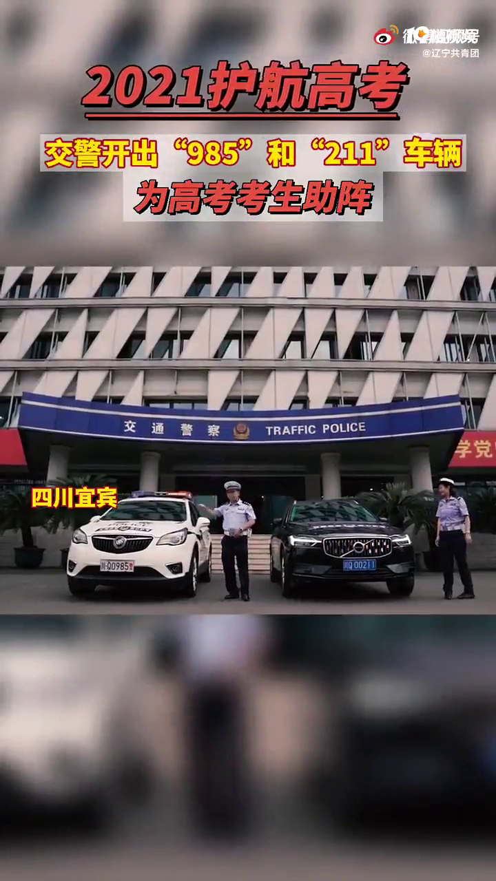 四川省宜宾市公安局交警支队给高考考生的特别礼物:就让“985”“211”来送你们进考场吧。