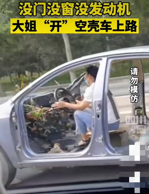 8月14日,河南郑州。一女子开着“空壳车”上路,这辆车没门、没窗、没座椅,甚至没有发动机。据拍摄者介绍,该女子坐在驾驶座小板凳上靠牵引绳在马路上行驶。观观提醒:危险行为,切勿模仿。
