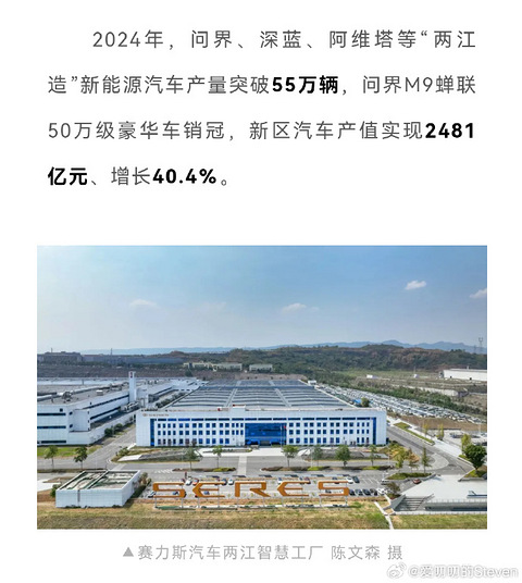 赛力斯市值超过上汽,2024两江新区GDP破五千亿