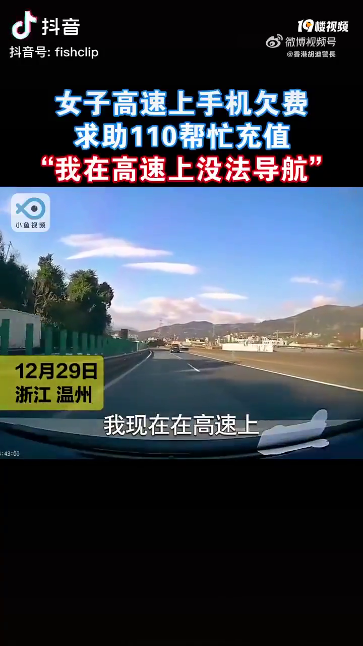 12月29日,浙江温州,女子在高速上因手机欠费导致导航没有网络,灵机一动求助110帮忙充值,最后女子老公成功缴费。网友:果然是有困难找警察!小编温馨提醒,高速开车可不能打电话哦!