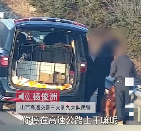 男子怕狗晕车应急车道违停遛狗,应急车道是生命通道,不可占用!