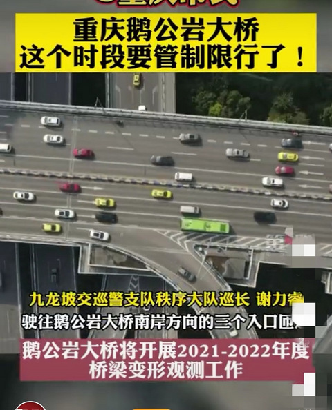 1月8日至10日,00:00—06:00鹅公岩大桥将管制限行