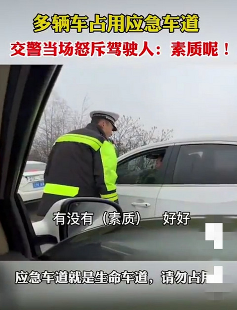 多辆汽车违法占用应急车道,交警当场怒斥驾驶人:素质呢
