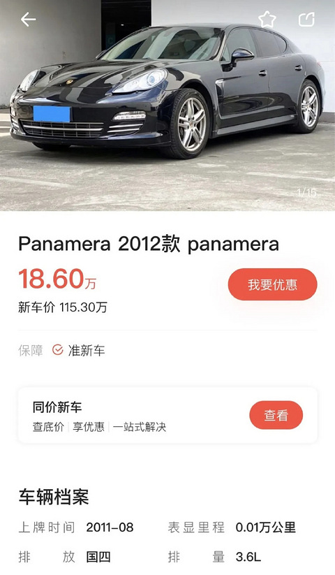 最近在网上看到一辆二手车,2010款保时捷帕纳梅拉(图片中信息有误,应该是2010款车型,因为2012款没有3.6L版本),2011年8月份上牌,到现在车龄将近10年了,表显里程只跑了0.01万公里,重点是这辆车二手车商报价只要18w! 正常来讲,同年限的二手保时捷帕纳梅拉,价格基本没有低于40w的,更别提这台车只跑了100公里,明显的是个坑啊! 我能想到的两种情况: 1、这车可能是个大事故车或者