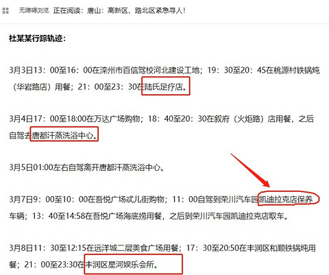 唐山发布确诊患者轨迹(凯迪拉克车主的日常)